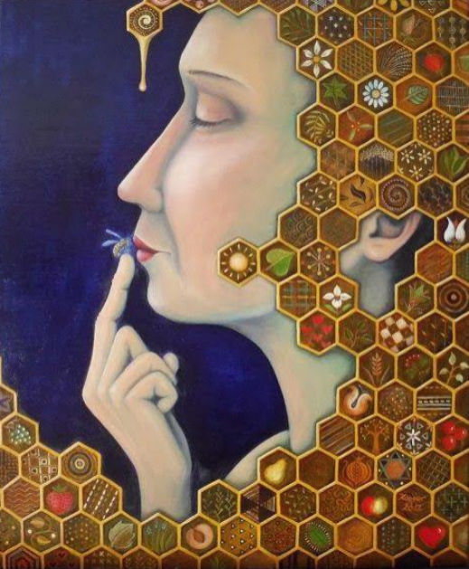 8. 3. 2023 Ob 8. marcu ... … želimo vsem ženskam lep praznik! Foto: (c) Elisabeth Kopjar - "The Beekeeper", olje na platnu, 2012.
