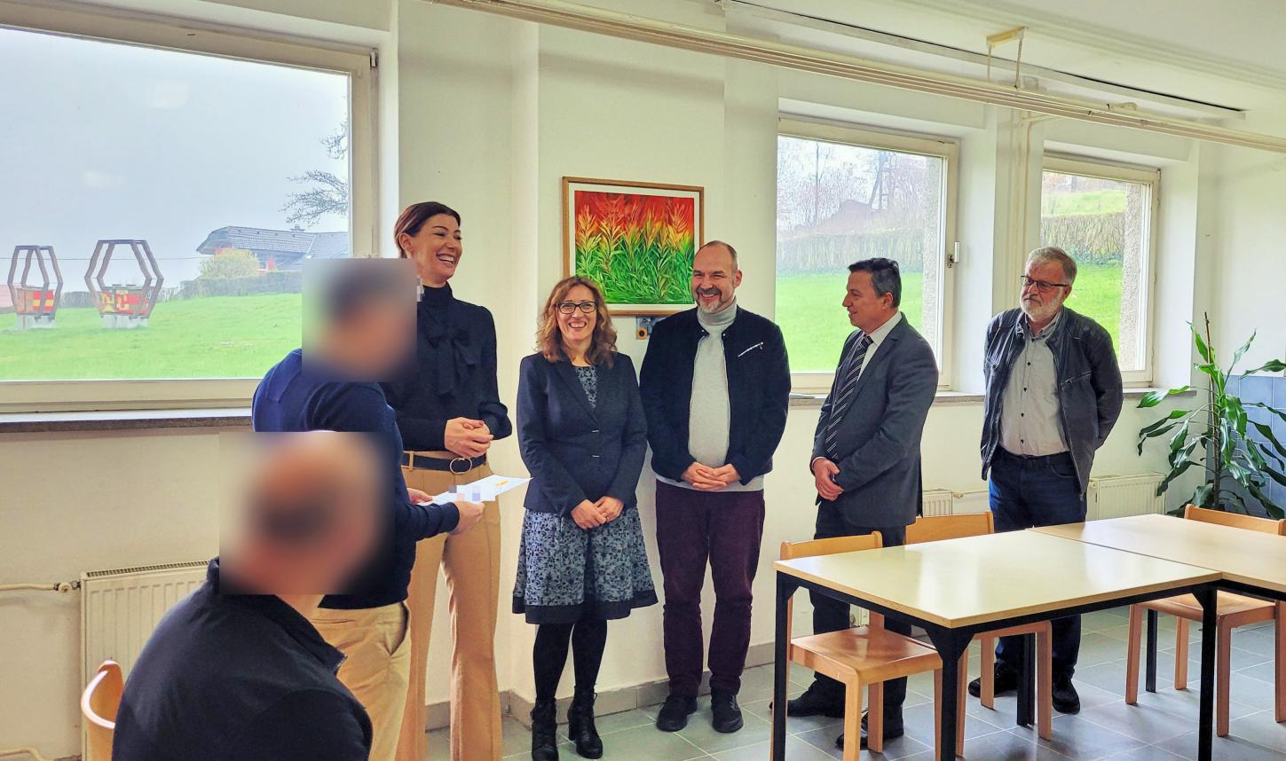 Ministrica dr. Dominika Švarc Pipan je ob koncu srečanja obsojencu, aktivno udeleženemu v projektu, podelila diplomo o opravljenem čebelarskem usposabljanju ter v zahvalo ob obisku prejela tudi kozarček letos iztočenega medu iz panjev v zaporu na Igu. Drugi bivši obsojenci, ki so bili v pretekli sezoni vključeni v projekt Medena celica in so tudi opravili ustrezno število pedagoških ur, pa bodo diplome prejeli po pošti.