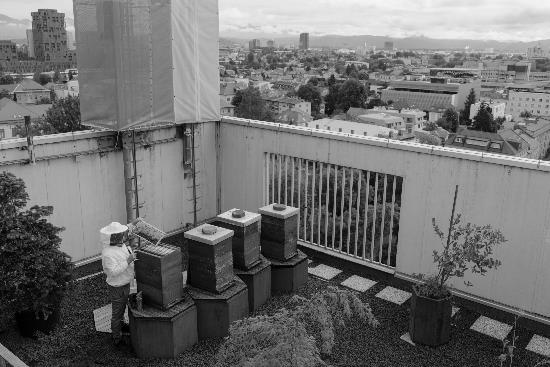 Strešna terasa B&B Hotela Park Ljubljana je že lep čas ena od najbolj priljubljenih urbanočebelarskih točk za številne obiskovalce z vsega sveta. Sicer pa je Hotel Park Ljubljana tudi prvi hotel v Sloveniji, ki je prejel prestižni Travelife Gold okoljski znak za trajnostni razvoj, ki upošteva dosežke na socialnem, okoljskem in ekonomskem področju. Na svoji strehi, ki je tudi unikatna mestna razgledna točka, gosti urbane čebele že sedmo leto - vabljeni, da se nam oglasite in izkusite občutek sobivanja s čebelami v mestu "iz prve roke". Ne bo vam žal!