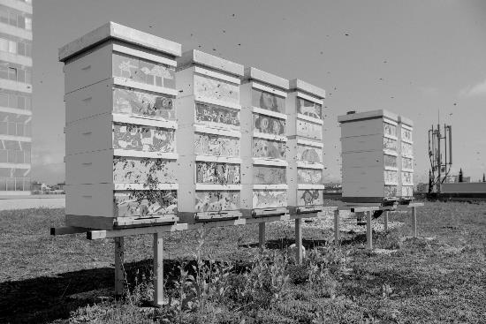 Panji izredno praktičnega nakladnega (Langstroth) formata, s katerimi čebelari prevladujoči del našega članstva, se krasno vklapljajo v okolje modernistične arhitekture oziroma v morfologijo mesta. Kljub navideznemu protislovju so njegov organski sestavni del, tako kot čebele in drugi divji opraševalci, za katere so bila mesta vse do nedavnega prave oaze biotske pestrosti. S panji na strešni terasi Cankarjevega doma upravlja Franc Petrovčič, eden od pionirjev mestnega čebelarjenja pri nas, in po dogovoru je možen tudi ekskluziven obisk teh panjev z osebno predstavitvijo in pokušino najbolj lokalno pridelanega medu.