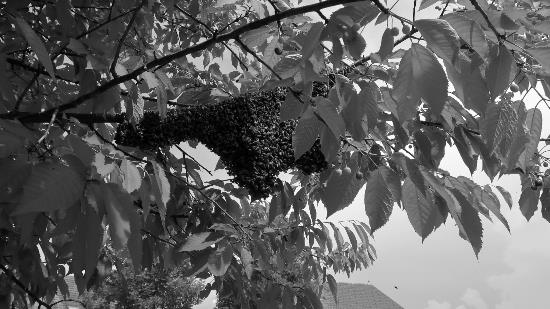 "Nič posebnega, pač moj prvi roj," je o fotografiji dejal njen avtor, Iztok Remškar. No, gotovo si prvi pobran roj zapomni prav vsak čebelar - po tega na sliki je moral Iztok na češnjo h gostilni Krpan v Tacnu, na kateri konec maja 2018 niso "zoreli" samo sladki rdeči sadeži. Rojenje je naraven in večinoma nenevaren pojav - čebelja družina, ki v času bujnega cvetenja doseže hiter razvoj, se odloči, da se bo razdelila na dva dela. Pri modernem pristopu k čebelarjenju, ki ga še posebej omogoča tehnika nakladnih panjev, se poskušamo temu sicer izogniti.