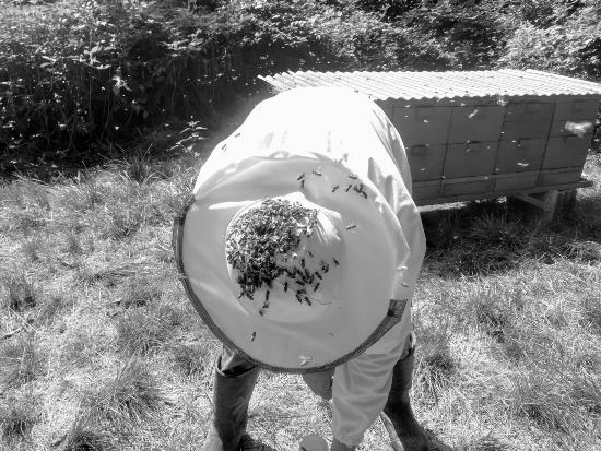 Takole je ob fotografiji zapisala naša članica Darja Jenko: "Običajno s starostjo postajamo zrelejši, preudarnejši, bolj modri in tudi bolj umirjeni. Čebele v času svojega življenja opravljajo različne naloge in paša sodi med eno zadnjih opravil v njihovem življenju. Pašne čebele preudarno porabljajo energijo pri izletavanju iz panja kot tudi pri nabiranju cvetnega prahu in nektarja. Na mentorjevem klobuku so mirnost duše in telesa začutile tudi čebele, zato so si privoščile kratek počitek."