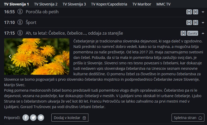 Ob 17:15 vas vabimo k ogledu oddaje Ah, ta leta! - oddaja za starejše na programu TV Slovenija 1, ki bo tokrat posvečena čebelarstvu.